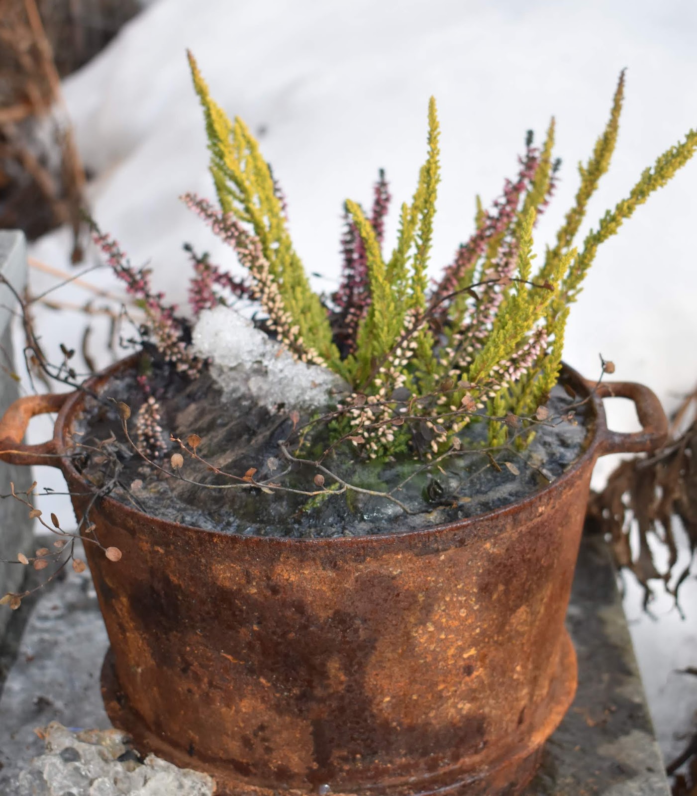 höstljungen fastfusen i sin kruka blir en vacker vinterbukett...